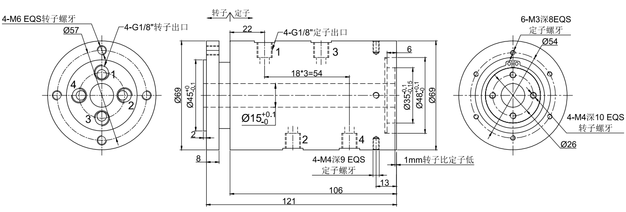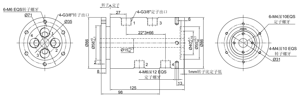 GJ4015ϵÁÐ (ÖпÕ15mm, 4½ø4³ö, ÖÐ¿ÕÆøÒºÐýת½ÓÍ·,Æø»¬»·£¬ÒºÑ¹»¬»·)