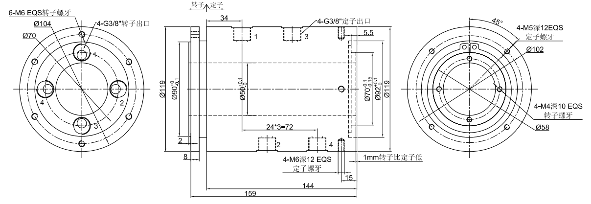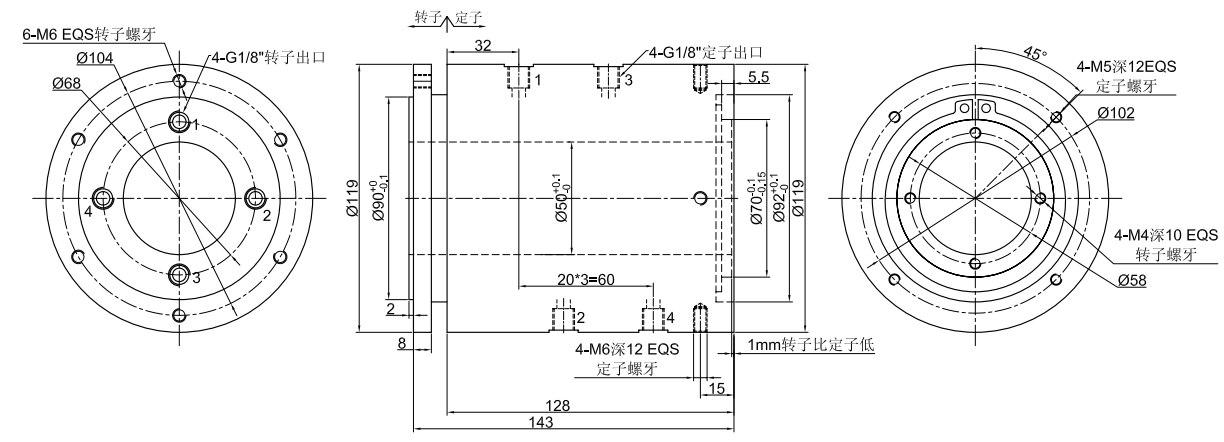 GJ4050ϵÁÐ (ÖпÕ50mm, 4½ø4³ö, ÖÐ¿ÕÆøÒºÐýת½ÓÍ·,Æø»¬»·£¬ÒºÑ¹»¬»·)