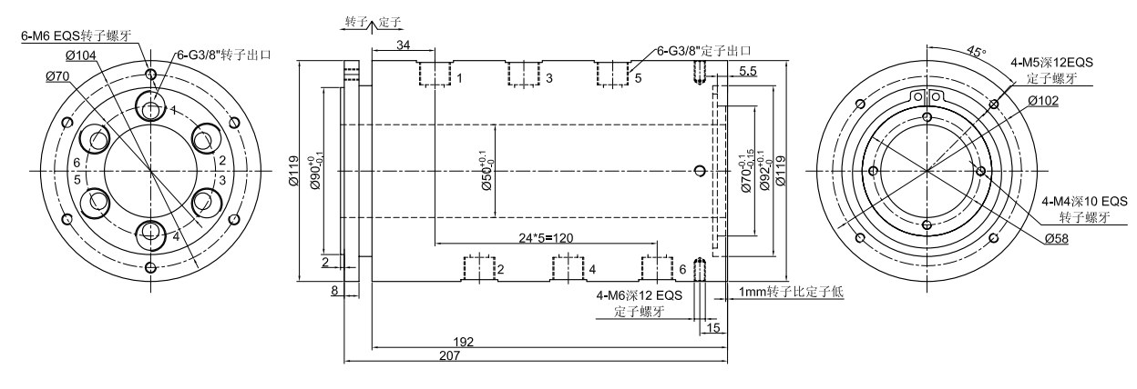 GJ6050ϵÁÐ (ÖпÕ50mm, 6½ø6³ö, ÖÐ¿ÕÆøÒºÐýת½ÓÍ·,Æø»¬»·£¬ÒºÑ¹»¬»·)