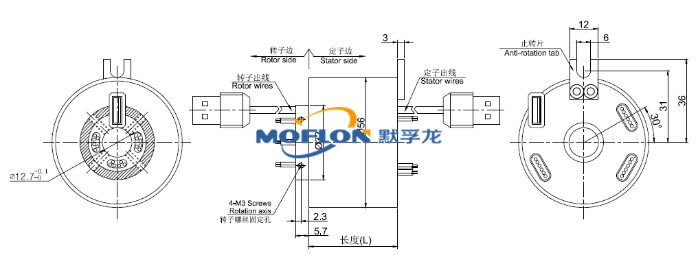 6.测井电滑环转定子端均安装全封闭,防尘防水滚动轴承使寿命可以满足大部分工业应用;